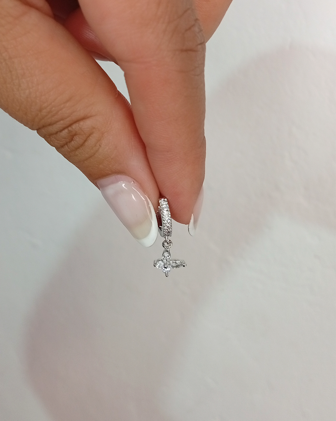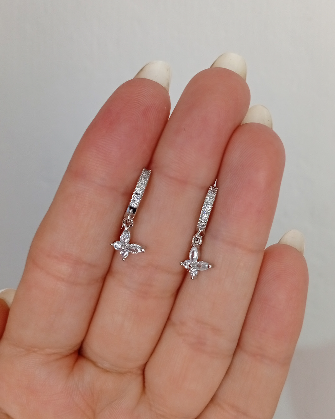 Las argollitas con cubic mariposa son de acero blanco, tienen cierre clic super cómodas y fácil de colocar.